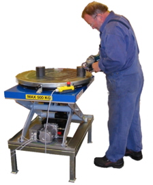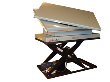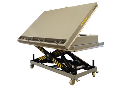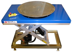 Special lift table with both turntable top and tilting top platform. |