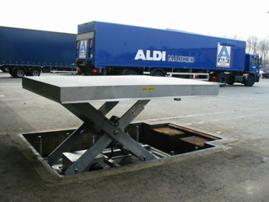 Special lift table. Galvanised with loadingdock.