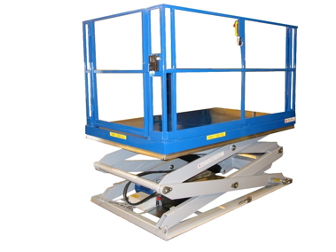 ILD 3000 double vertical lift table with railing and door. |