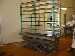TM1500 stainless lift table with turntable for use in dairy. |