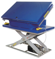 Standard scissor lift table with both turntable top and tilting top platform. |