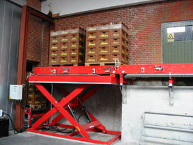 Special lift table with a tilting top for handling euro pallets. |